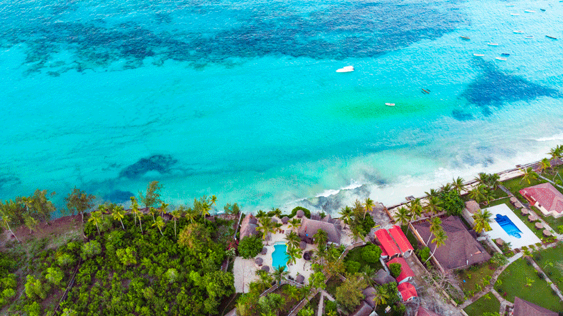 Längst ner på sydspetsen hittar ni Kizimkazi, som erbjuder en helt annan upplevelse än de klassiska vykortstränderna i norr. Det som gör detta till en av de bästa stränderna på Zanzibar är den vilda och lite råare naturen. Här kantas kusten av dramatiska korallklippor och små gömda badvikar som känns som privata paradis. Kizimkazi är mest känt för att vara den bästa utgångspunkten för att se delfiner i det fria, men vi uppskattade lika mycket det genuina lugnet i fiskebyn. För resenären som vill komma bort från de största hotellanläggningarna och uppleva det vilda Zanzibar, är Kizimkazi ett fantastiskt val.